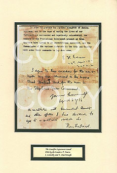 Reproduction of the historic Easter Rising Ceasfire agreement with the signatures of Padraig Pearse,...