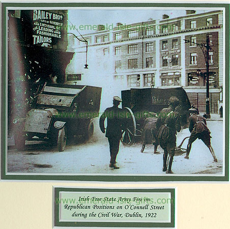 - Irish Civil War 1922. This picture shows Free State troops firing on republican positions on O'Connell St. The republicans had attempted to seize key positions in Dublin. They were quickly routed and forced to retreat.