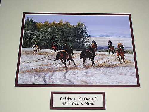 Mounted picture of horses galloping on the Curragh on a Winters morning. The Curragh is the captial...